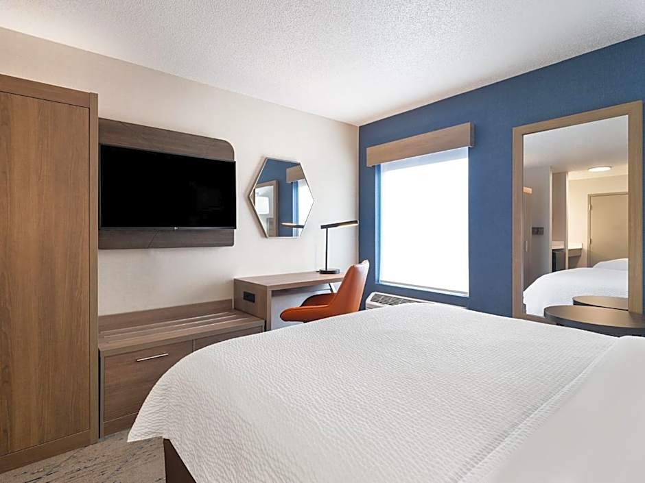 Year-round relaxation awaits with a heated indoor pool designed for adults, featuring a shallow end for easy splashes. The pool is free to guests, and a free fitness center helps keep the routine on track, rain or shine.